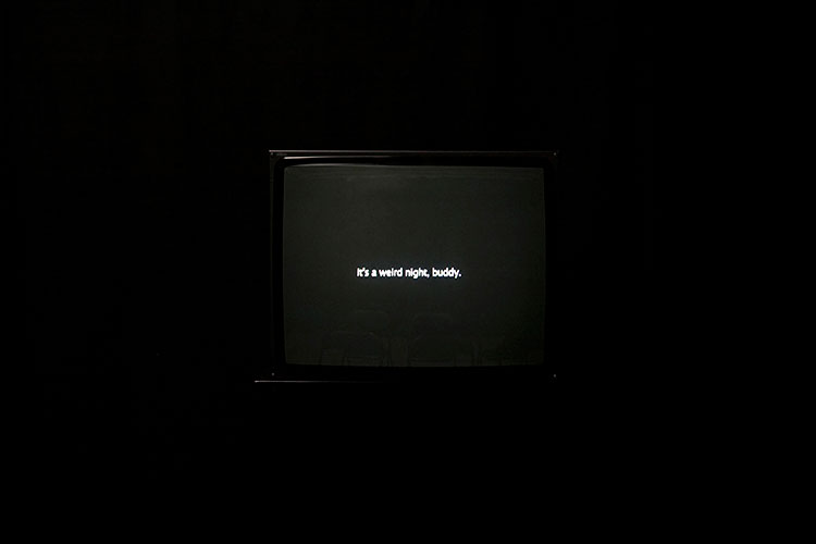 “The video documents a night in my Los Angeles neighborhood during a half-year stay in 2008. Monitoring gang activity, police helicopters circled the neighborhood on a regular basis. On a particularly noisy night, I went out to capture some sound. Within minutes, I heard gunshots. Over a black screen, Noir captures these gunshots and conversations with several residents and passers-by who try to make sense of what they heard and didn’t hear, saw and didn’t see. The video is either shown in a screening or as a monitor installation in an exhibition space.” – Mirko Martin