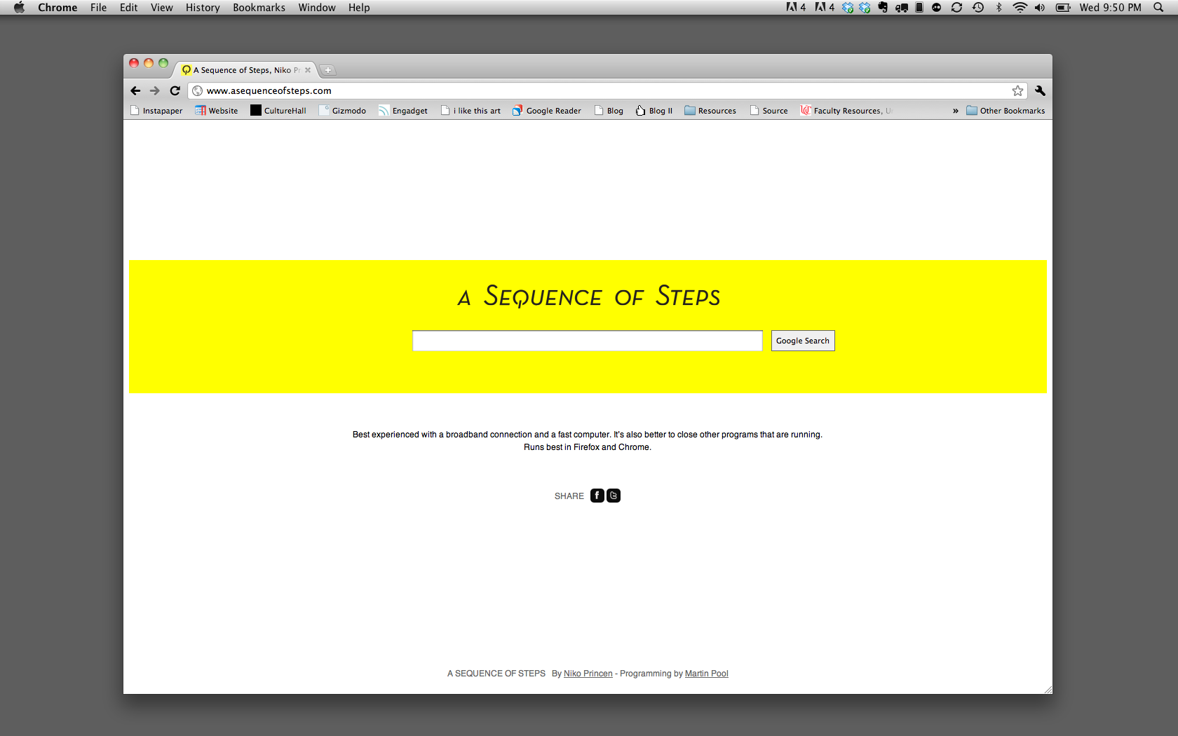 “A Sequence of Steps is an automatic web-browsing tool. It presents a new way of experiencing the Internet by creating different relations between websites. The trigger mechanism starts with a chosen point of departure but can lead you to the infinite space of the web without a conscious decision.