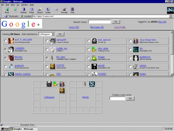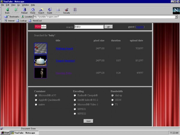 “Once Upon are three important contemporary web sites, recreated with technology and spirit of late 1997, according to the memories of Olia Lialina & Dragan Espenschied. They created a 1997 version of Google+, YouTube and facebook, all optimized for Netscape Navigator 4.03, running under Windows 95. Of course you can view them with a browser that still supports HTML Frames. I really love this little detail: the transfer speed of the server is limited to 8 kB/s («dial-up» speed).” – Today and Tomorrow