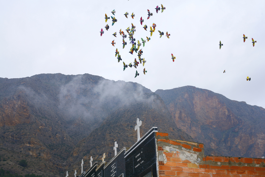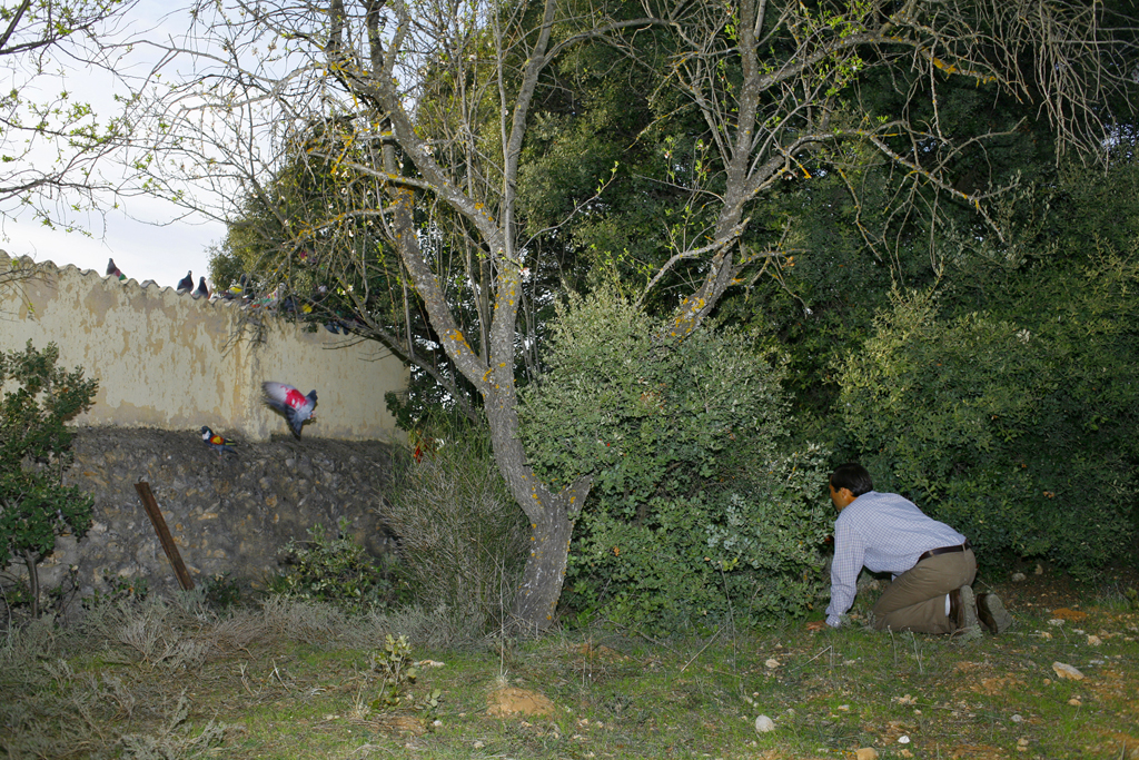 “Ricardo Cases’ third photobook deals with an unusual subject: the practice of pigeon racing in the Spanish regions of Valencia and Murcia, a game consisting of releasing one female pigeon and dozens of male pigeons that chase her trying to get her attention. None of them ever gets too intimate, but the winner is the one that spends the most time close to her. The winner is not the most athletic, the toughest or the purest in breed but the more courteous, the one showing more constancy and having the strongest reproductive instinct. The macho.