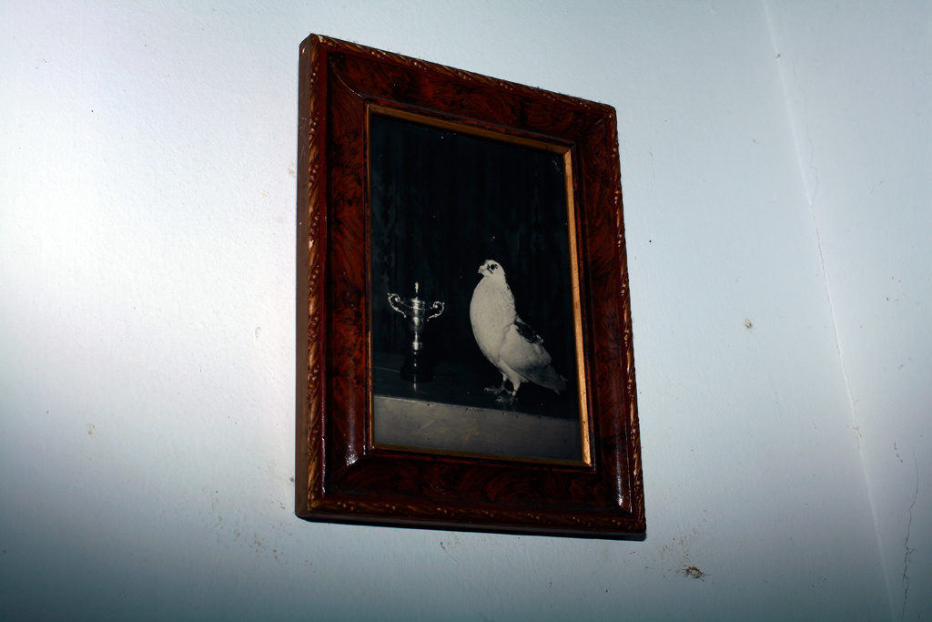Raising a male champion entails prestige and profits. Painted in a combination of primary colours, like a flag or a soccer kit, the male pigeon raised and trained to mate becomes a projection of the pigeon-keeper, who embodies its sportive, economic and sexual success or failure in the community. Far from the harsh reality of his daily life, theĀ colombaire has a second life where he can get to the top. He just needs a champion pigeon. The pigeon-keeper stays on the ground, while his projection is able to fly.