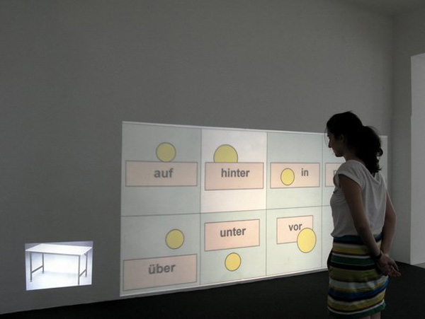 “Using methods and media such as sculpture, video, performance, language, sound, graphics and slide projection, Ruth Buchanan constructs both literary and built spaces whereby the underlying motives and questions at stake create an interplay of contingencies. At the core of the speculations conducted in these spaces are terms describing identity and the parameters of artistic action along with their historical precursors.