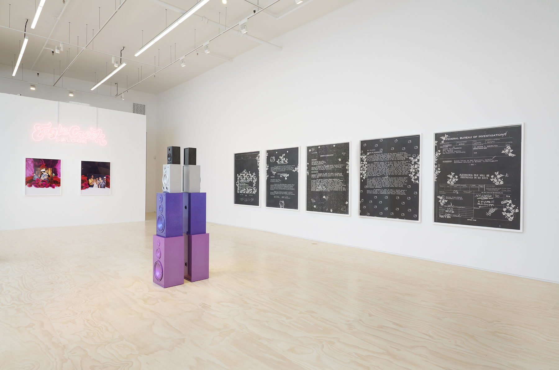 “This new body of work uses installation, sculpture, photography, wallpaper and large-scale drawing to examine the artist’s familial legacy. Employing archival material–such as the 500-page dossier compiled by the FBI surveilling her father, Rodney Barnette, during his time in the Black Panther Party–the artist wields the personal nature of generational inheritance to inflect international political struggle with urgency, collapsing temporal distinctions of past and present. The solo presentation at the gallery runs simultaneously with the two-venue exhibition, Sadie Barnette: Legacy and Legend, at Benton Museum of Art at Pomona College and Pitzer College Art Galleries, on view until December 18, 2021…” – Jessica Silverman Gallery