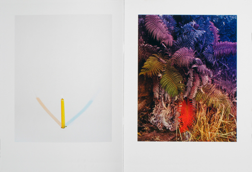 “‘When I was asking for help titling the book friends would ask ‘well, what’s it about?’ and I’d say, ‘It’s about color, it’s about dying, and it’s about light’. So that’s it, Color Dying Light. There are pictures where I added and subtracted color from flowers, one where I inverted images and re-photographed them so the negatives were positive (because I wanted to cast a positive light on the death of admired artists), as well as recorded reflections of projections of light in my studio'” – Sam Falls