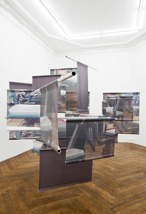 “Sean Raspet’s work focuses on circularities of time and logic that operate across multiple spheres of everyday life. His work considers the ‘extra-material’ materiality of processes of circulation and administration, as well as the parallel cycles of financial capital and the image economy. Present here is the idea of stock photography as an all-encompassing parallel world–one that exhibits an autonomous, self-reflexive, structure analogous to a feedback loop or mise en abyme. With his installation of commercially produced banners and mugs, Raspet posits that both photography and finance are systems that, through their internal logics, create new, fabricated realities.