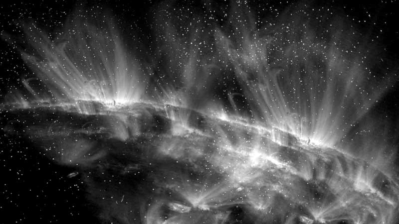 Early on in our fellowship we came across one still image of what turned out to be the Sun. We were fascinated by this image and wondered why we hadn’t seen anything like it before. After some rooting about we discovered there were archives full of these documents of the sun but they required specialised knowledge just to extract each individual still from the data package it was stored in. We set about learning from the scientists the methods of extracting them and over the course of three months we downloaded gigabytes of archives. From here we turned these files into time lapse sequences according to their spectral frequencies and the film Brilliant Noise began to emerge.