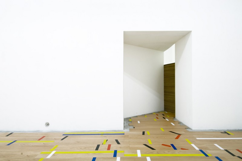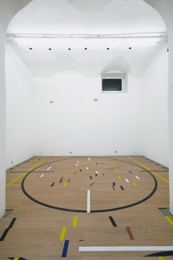 It will be like this: when you stand or walk on O and No, a gym floor that has been assembled with a different intention than the ruliness of sports, you will see that the floor has been reduced to an image. An image of material excess. Or an image of nothing. An image of that which turns hell into hello. On the walls you will see O: in these inkjet prints, the same subject is reproduced over and over again, only in different colours and styles. They have their origin in Word, a program released in 1983 by Microsoft. In this program, one is offered a selected range of colours and sizes to produce and output letters and numbers. One is likewise offered the option to then cancel these choices. These O’s are unfinished. They have never gone full circle to become holes in language. They simply smile back at us. If O is a thing, it is a thing that signifies nothing.
