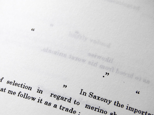 Origin of the Species – This book compares a copy of Charles Darwin’s Origin of the Species published in 1902 and a more recent copy published in 2007. It highlights the evolution and editorial changes made to the book over the last century.