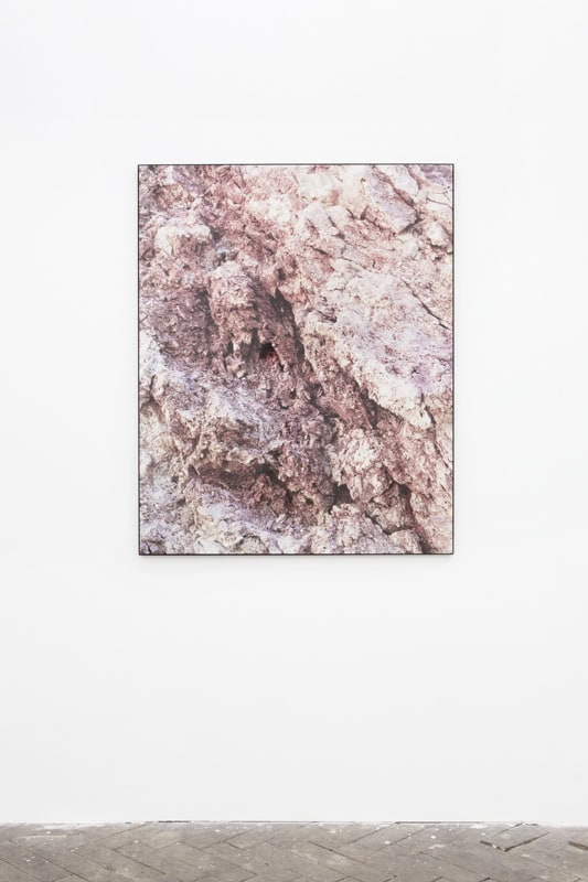 An essential part of the work is mainly traveling as a strategy for gaining knowledge. With the investigation of the excavation of the future archaeological museum of Israel, the ‘National Campus for the Archaeology of Israel’ in Jerusalem, Steffen Bunte‘s preoccupation with structure and form is transmitted in particular. The images of stones Site I (A), Site I (B) and Site II remind us of pictures shot by a scanning electron microscope. Here physical properties, such as sense of scale completely dissolve in the large-format photographs of the surfaces.This bizarre but equally technical world of the macrocosm also builds the basis for the black pedestal piece 300 , whose model is a greatly enlarged ice crystal. Here the borders between abstract macro photography and the images and forms that we know of, start to blur. Further this raises the question which aesthetic is inherent in the visualization of perception and knowledge.