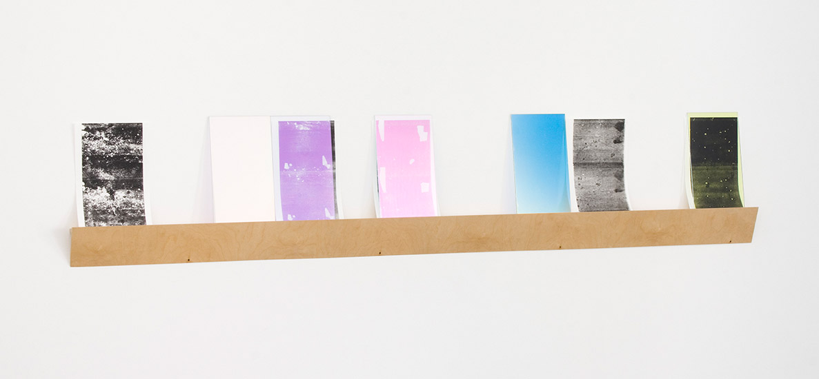 The title of the ongoing series “My Work Here is Done” formulates Bishop‘s approach in a kind of self-assessment that is amounting to an artistic programme. Thus the works have the last word when Bishop accommodates effects that emerge out of the works themselves and are not of his making: in the early textile works of the series, consisting of distorted tights stretched over objects, Bishop plays on the tension created by references to the human body. By contrast, the more recent works of the series address the dynamics of optical phenomena arising from materials such as glass and colour filter foil on account of their properties of transparency and reflection.” Galerie koal