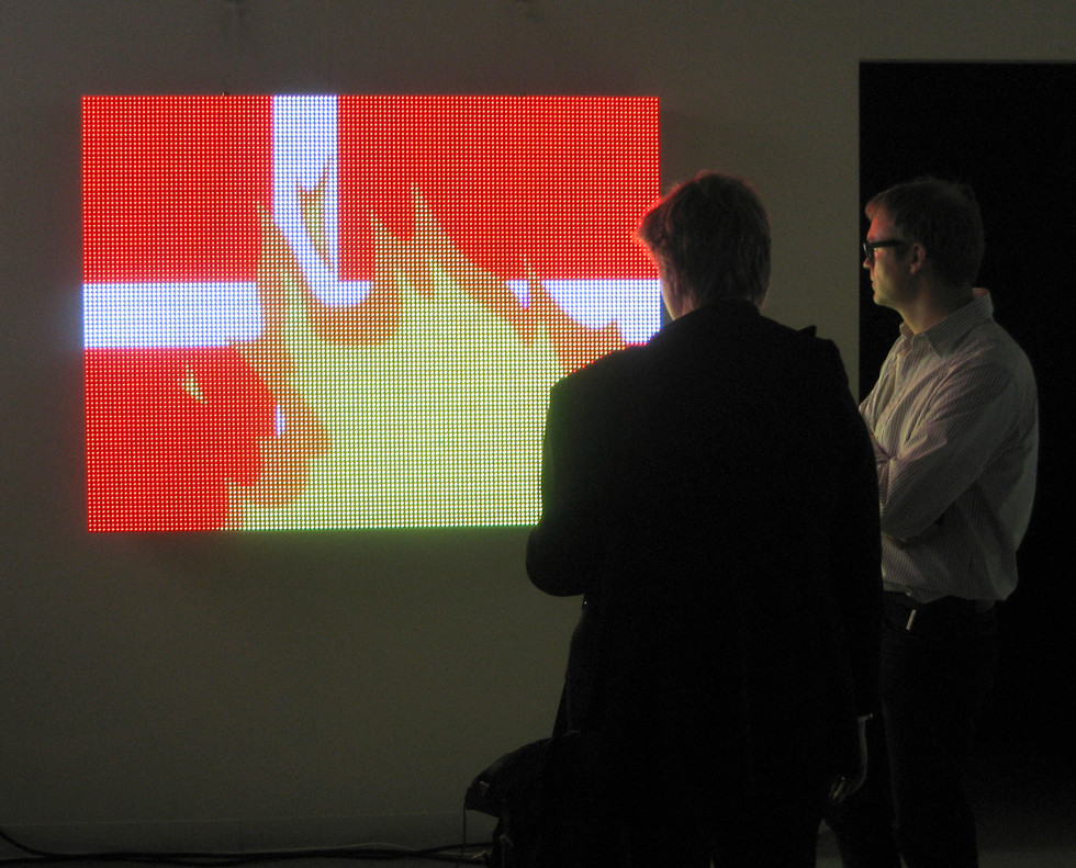 “Banks, of course, have rarely been so topical. Names like Northern Rock — the commercial bank that suffered a devastating run as the subprime mortgage crisis emerged in 2007 — and Bear Stearns — the investment bank that collapsed in 2008 — have been prominent in the news. Reportage and op-ed have repeatedly explained economic terms and banking practices that until recently were things I’d barely considered. Nothing in the Karangahape Road branch of the ANZ on the day of Today We Don’t Use The Word Dollars invoked the technicalities of the recent international financial turmoil directly, but they were evoked nonetheless. Simply through bringing the frame of contemporary art into the bank, SUPERFLEX drew special attention to the institution in general, for both staff and art audience.