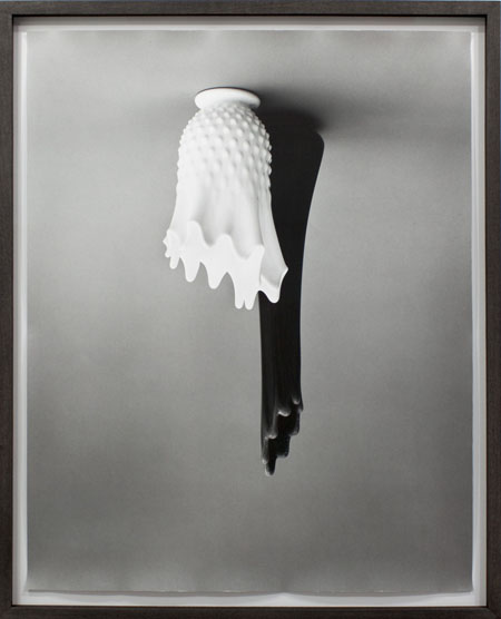 “Talia Chetrit’s second solo show at Renwick Gallery could be described as a satisfying instance of something simple done well. After all, what could be more straightforward than a group of elegantly composed, black and white, still-life studies of pattern, form, texture and light? Chetrit’s exhibition featured images of thick, bevelled glass vases placed against hard curved planes of tightly wound wire (Vase/Machine), geometric white grids casting shadows against someone’s back (Nude/Grid), and simple forms such as cylinders and flat pieces of wood making neat triangular shadows (Triangle/Tube, all 2011), all sumptuously printed in high-contrast rich blacks and crisp whites.