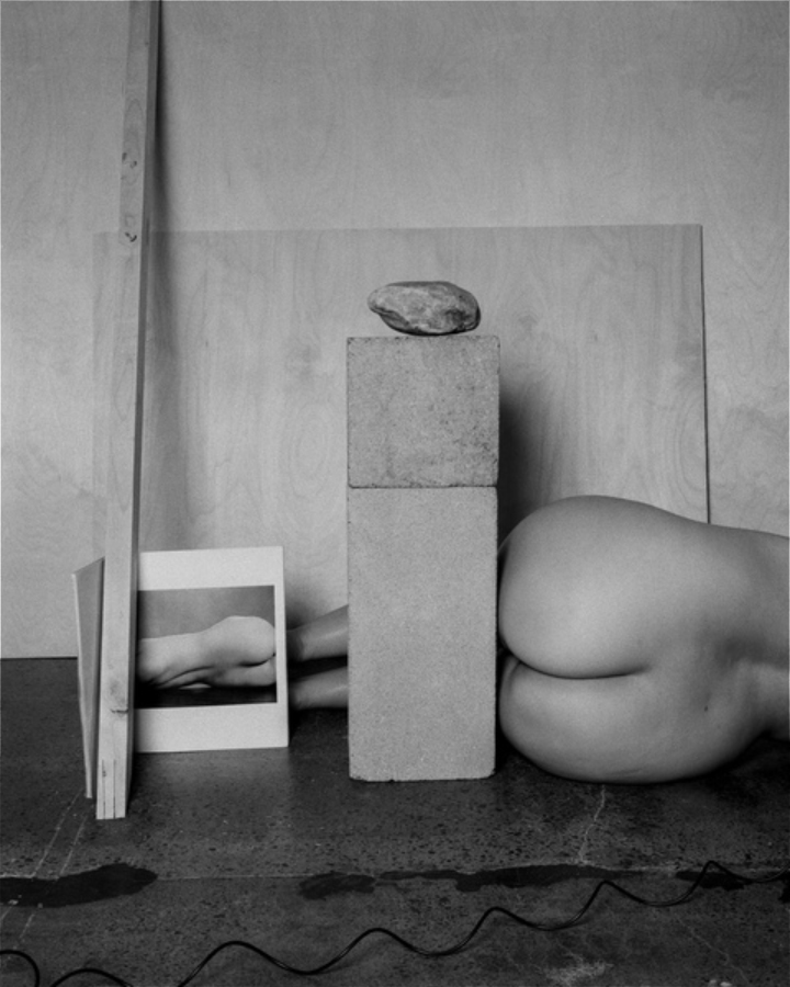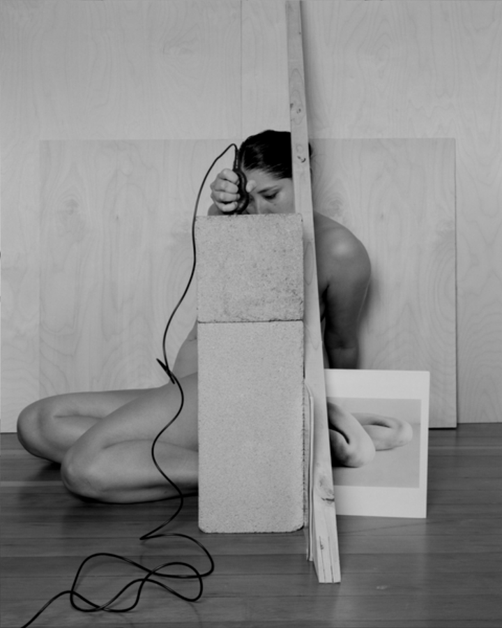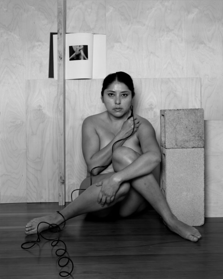 “Tarrah Krajnak’s work makes clear reference to the history of photography, on the one hand, and to the artist’s identity as a Latin-American woman, on the other. A sequel to her first critical homage to Ansel Adams, this series is dedicated to another North American “master”, Edward Weston. Krajnak here re-enacts the famous Nudes (shot starting in 1927, and published as a unified work in 1977). She takes the place of models Bertha Wardell and Charis Wilson, reproducing their poses—but also depicts herself as author of the photographs, a remote shutter release in hand. Restoring to the picture what Weston left outside the frame– portions of the model’s body and in particular, her face, whose obliteration tends to make us forget the identity of the two women and participation in the creative process– or emphasizing Weston’s framing choices —what he excluded— using simple wooden panels, Krajnak replays a significant chapter in the history of photography while re-focusing on the role of the female model. Further, she challenges the female stereotypes created and propagated by photography: a white ideal, shaped by male tutelary figures. Through this performative and photographic act, Krajnak affirms her Latin-American identity and her body of color. She creates through her presence and the gesture of image reconstruction a dialogue with her predecessor, Weston, as well as with her contemporary viewers.” – Sonia Voss, Curatorial Statement for the Les Recontres Arles Discovery Award Exhibition.