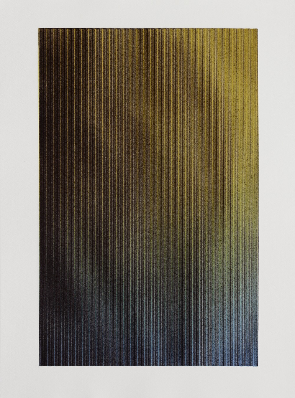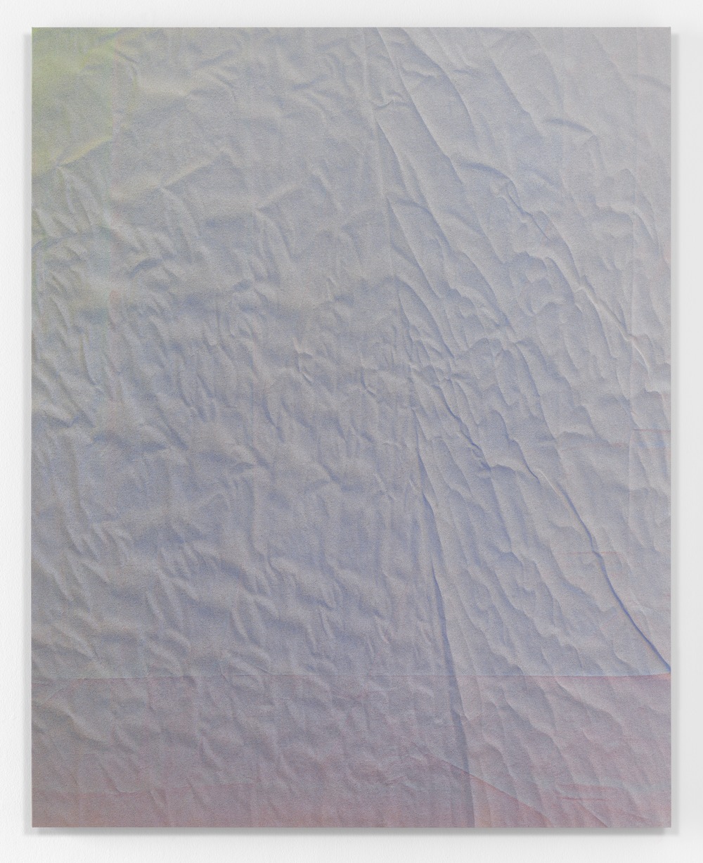 “I probably think about higher spatial dimensions more than any other aspect of my practice. At the root of my interest is the question of what consciousness is: what it’s made of and what its limitations might be. As creatures that operate in three dimensions, what capacity do we have to conceive of a dimension that’s beyond, or even coiled within, the space that we experience? What if this 3D volume that is our space is in fact the surface or boundary of a 4D volume, just as a 2D plane is the boundary of a 3D volume, and so on down the line? You’re right that the “Weave” and “Fold” paintings have a teeter-tottering quality: they oscillate between being flat surfaces and 3D objects. My thought was that if the work could soften the distinction between 2D and 3D states of being, it could efface, or at least imply the possibility of effacing, a similar distinction between 3D and beyond. Like a portal through which one might think about these things. I guess the attraction stems from a kind of faith that something beyond what is perceptible exists and can be imagined, even if it can’t be experienced.” – excerpted from her interview with Art in America