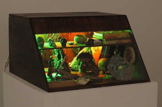 His work, seemingly playful, uses pieces of real references to question archeological narratives and to present the element of subjectivity found in the process of constructing history. Using the method of collage in multiple mediums, he mixes incompatible elements and anachronisms that coexist in non-temporal or spatially specific theological and cultural universes.