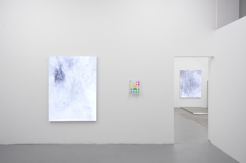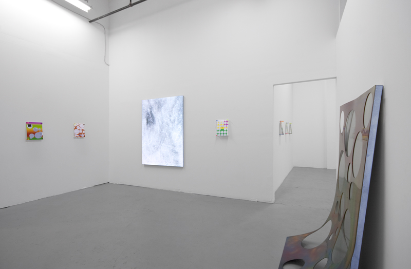 Parker Ito creates paintings using the highly reflective material 3M Scotchlite as a stretched canvas. When photographed Ito’s paintings turn in to an unrecognizable blur, a reflective white flash of light that obliterates the nuance of his painted marks on canvas. Ito’s installation images thus become new works altogether, nodes in a network of representations his paintings are a part of alongside cell phone pictures posted to Facebook, images from the exhibition’s opening, and Tumblr posts where his paintings are juxtaposed next to everything from internet memes to pornography. Thus, the experience of seeing the paintings in person becomes both unique and incomplete, it is a mode of viewing unlike any other yet knowingly one of many vantage points to be taken.