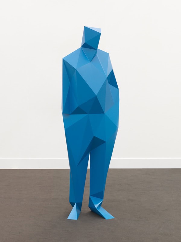 “Whether he uses digital photography, sculpture, public statuary, video, installations or even the art of the exhibition, Xavier Veilhan builds his work around the same axis: the possibilities of representation. One of the most striking features of his polymorphic practice is that he treats generic objects and shapes of everyday life so that they come out smoothed, without details, and resistant to any psychological insight. Since the 1990s, bestiaries occupy a significant place in this process, and among them, penguins and rhinoceros of unnatural colours, made of painted polyester resin. The Rhinocéros (1999), made on real-scale, was lacquered in Ferrari red, in a way that instantly modifies the perception of the mastodon’s “body work”. Already in 1995, with Les Gardes Républicaines, he had produced a completely generic set of four mounted guards. The statues stood like real size toy figures. Veilhan’s figures are archetypes reduced to essentials, prepared so as to allow the viewer to immediately project himself beyond the anecdotal. Without seeking to be a perfect copy, they manage to impose their intimidating authority over him.