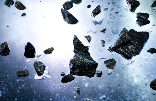 The artist rendered this universe by recording an explosion of a real-life giant boulder in the suburbs of Shandong, China using six high-definition video cameras, shooting at 2,000 fps, all positioned to capture different perspectives of the explosion. Wang then extended the length of the explosion from all angles into a three minute video.